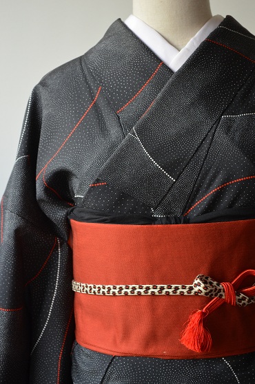 白い点描と小さなパールが連なる、モダンキュートな袷着物です!