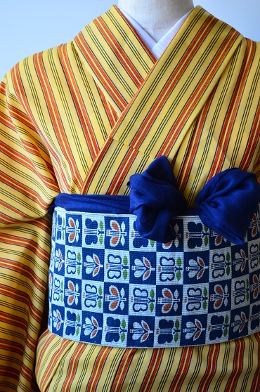 ひよこのようなパステルイエローとオレンジのストライプ単着物です♪